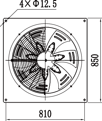 | Model | Blade Diameter (mm) | Voltage (V) | Frequency (Hz) | Speed (rpm) | Power (kW) | Current (A) | Airflow (m³/h) | Noise (dB(A)) |